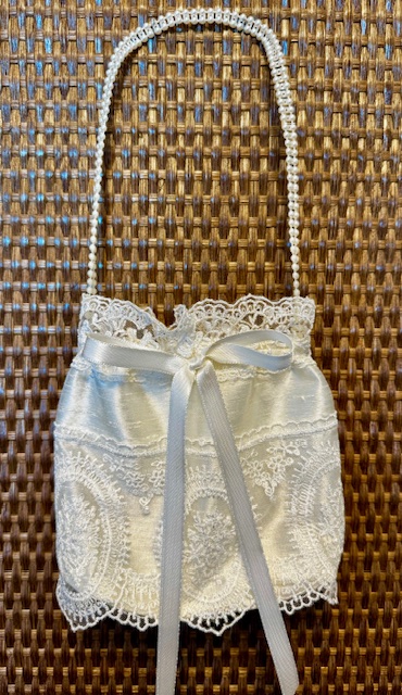 Nėrinių rankinukas mergaitei. Ypač tinka pirmai komunijai ar kitoms šventėms, įsidėti servetėlėms ar kitoms malonioms smulkmenoms.